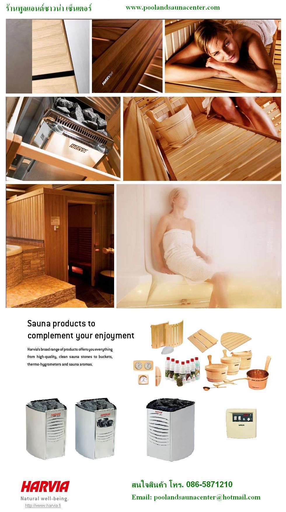 จำหน่ายอุปกรณ์ ได้แก่ เตาซาวน่า ถังน้ำ-กระบวยไม้สน เทอร์โม-ไฮโกรมิเตอร์ หินซาวน่า