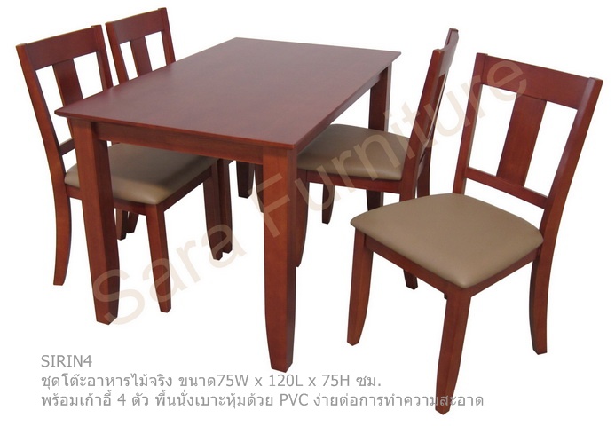 พร้อมเก้าอี้ไม้ 4 ตัว พื้นนั่งเบาะหุ้มด้วย PVC ง่ายต่อการทำความสะอาด