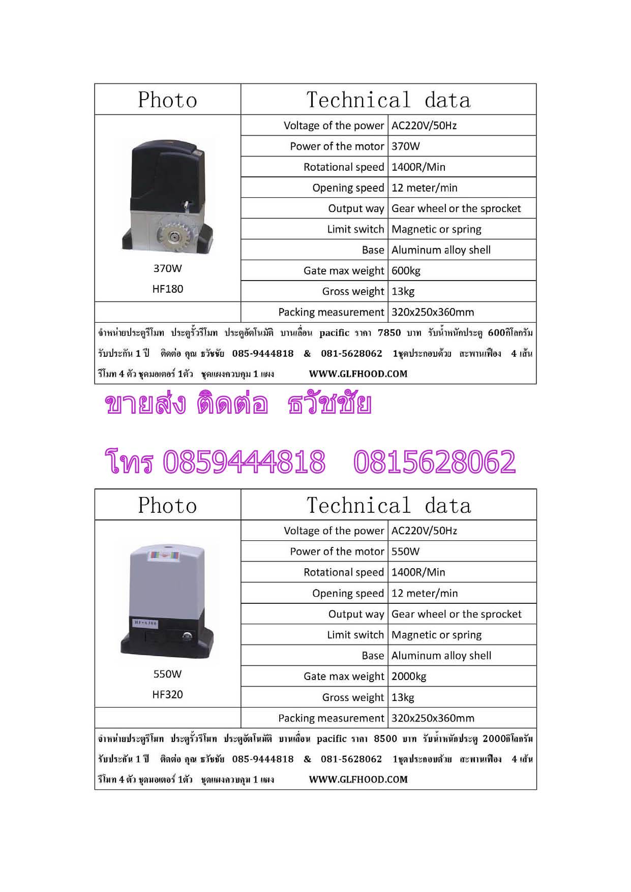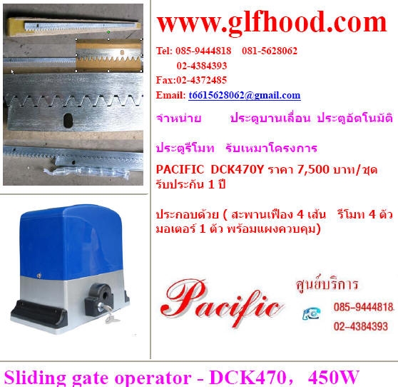 2จำหน่ายประตูรีโมท ประตูรั้วรีโมท ประตูอัตโนมัติ บานเลื่อน PACIFIC DCK470Y ราคา 7,500 บาท รับน้ำหนักประตู 600-1000 กิโลกรัม รับประกัน 1 ปี