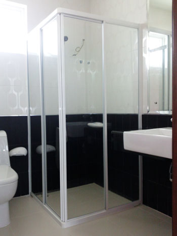 รับติดตั้ง ฉากกั้นอาบน้ำบานเปิดกระจกเทมเปอร์ 10 มม. บานเลื่อน 3 ตอนกระจกเทมเปอร์ 5 มม.