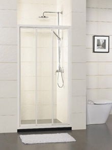 ฉากกั้นอาบน้ำบานเลื่อน 3 ตอน กระจกเทมเอร์ 5 มม. กระจกกั้นบนอ่างอาบน้ำบานเลื่อน บานเปิด