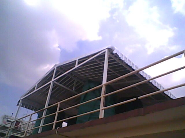 กันสาดโพลีคาร์บอเนต โครงเหล็ก ตารางเมตรละ 1500 บาท