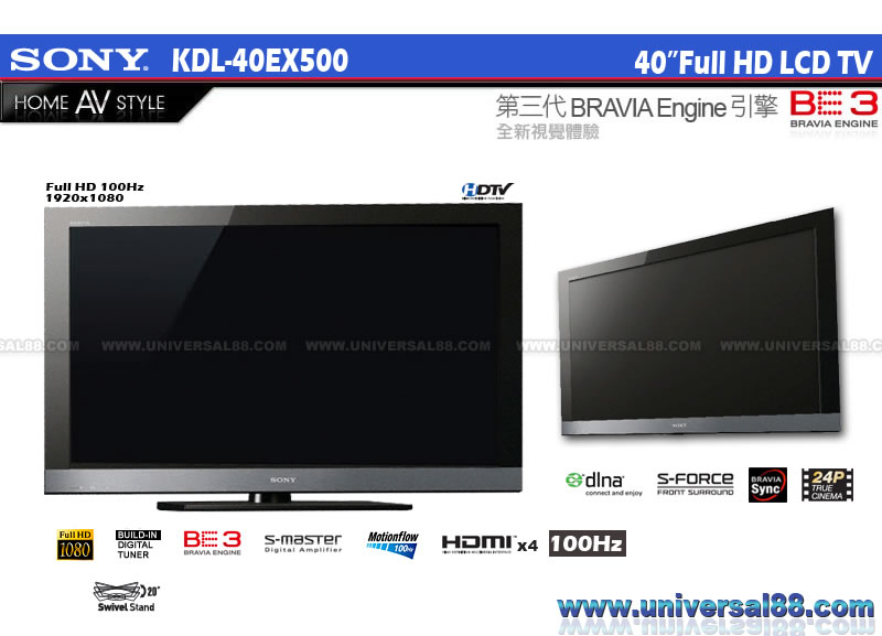 BRAVIA LCD TV SONY 40" รุ่น 40EX500 ปกติ 29,990.- ลดเหลือ 24,500.-