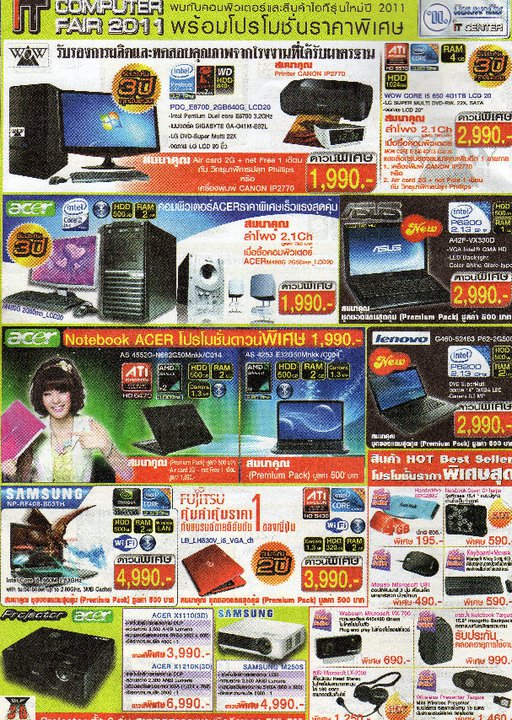 6.สินค้าคอมพิวเตอร์และสินค้า IT รุ่นใหม่ ปี 2011 PC คอมพิวเตอร์ Notebook Acer ดาวน์ 1990 บาท Notebook Lenovo ดาวน์ 2990 บาท Notebook Fujisu ดาวน์ 3990 บาท Notebook Samsung ดาวน์ 4990 บาท เครื่องฉายภาพ Projector Acer ดาวน์ 3990 บาท Projector Samsung ดาวน์ 4990 บาท
