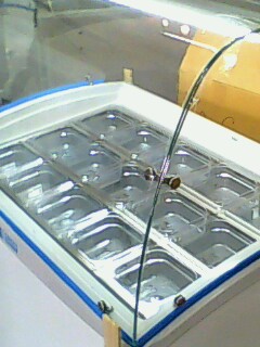 4. รางแสตนเลสสำหรับยกโชว์ถาดหลุมใส่ท้อปปิ้งให้ติดหน้าตู้