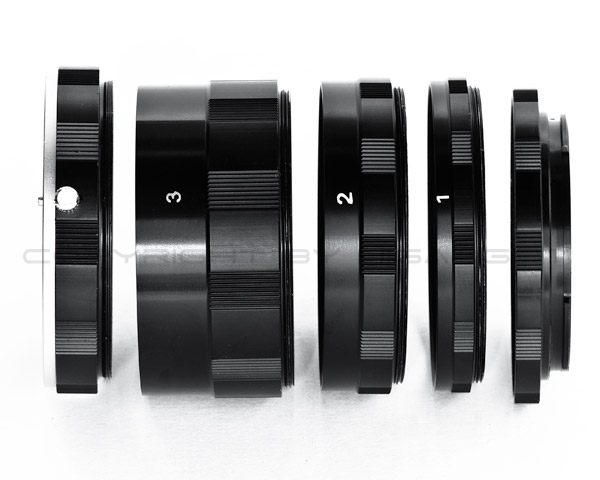 Nikon Mount, for all Nikon SLR & DSLR It moves the lens farther from the film or digital sensor. The farther away the lens is, the closer the focus, the greater the magnification. This extension tube does not affect image quality as there is no optics inside. In comparison, a close up filters are often blamed for degrading image quality. Brand new, never used; Made of metal (not plastic); color : black Adjustable Length This extension tube consists of 5 parts: Camera Body Mount Adapter Lens Mount Adapter 9mm tube (Tube 1) 16mm tube (Tube 2) 30mm tube (Tube 3) The more tubes you add, the closer the focus and the greater the magnification. Remarks There are no electrical contacts in the extension tubes. Exposure has to be adjusted manually. Aperture control is not available if you use a lens which does not allow you to manually adjust the aperture (without an aperture ring). Suitable For ALL NIKON DSLR and Film SLR and Lens