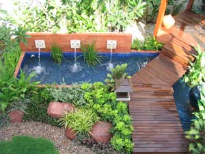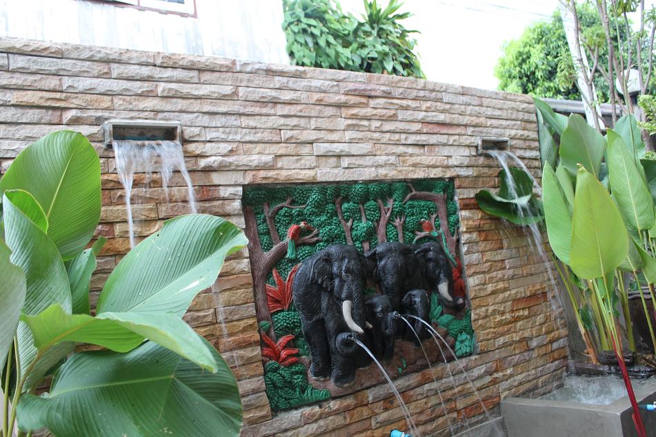 - หินทางเท้า บ่อน้ำพุ น้ำล้นและบ่อปลา