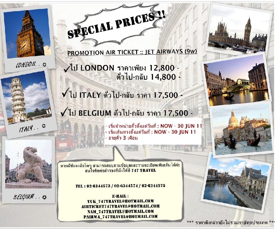 >>>Special prices !!! ไปเที่ยวกันไหม ? . . . LONDON,ITALY,BELGIUM . . . เดินทางในราคาสุดคุ้มกับสายการบิน Jet Airways (9W)<<<