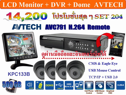 เครื่องบันทึกภาพ DVR AVTECH Support HardDisk 2000 GB + กล้อง DOME AVTECH Infrared 133d รับประกัน 2 ปี