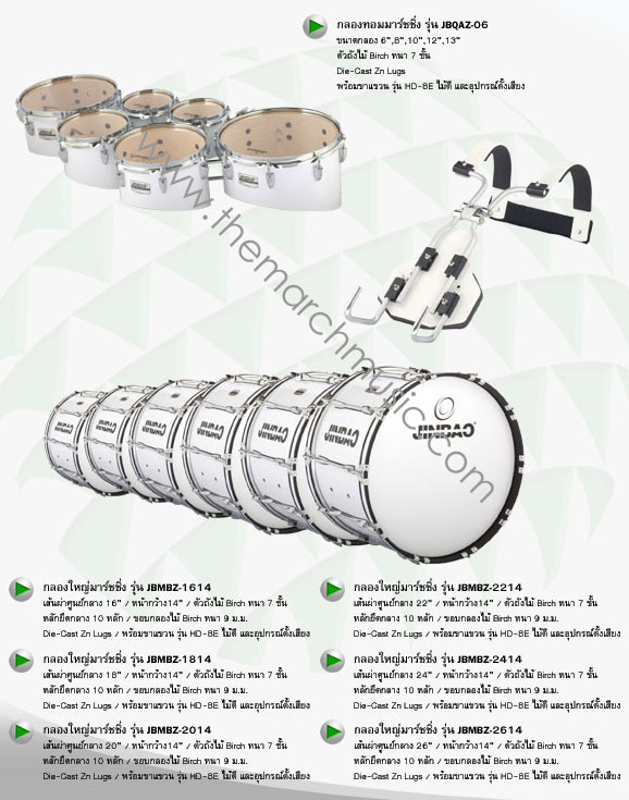 ขาย,กลองมาร์ชชิ่ง,กลองพาเหรด,วงดุริยางค์,วงโยธวาทิต,ยี่ห้อ,PLAYER,JINBAO,YAMAHA,PEARL,ราคาถูก