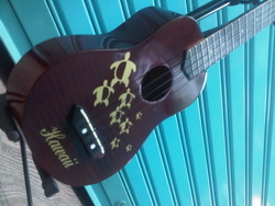 Soprano 15 เฟรต ของ Hawaii ลายดอกไม้และลายเต่าสัญลักษณ์ฮาวาย