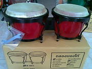 กลองบองโก้ไม้สีแดง อะไหล่โคเมี่ยม ขาเหล็กตันหนาพิเศษ หนังวัวแท้ไม้ได้ฟอง คุณภาพเยี่ยม