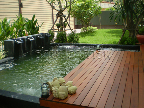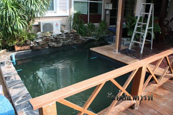 ภาพตัวอย่างของการจัดทำบ่อน้ำตก เลี้ยงปลาคาร์ฟในบ้านฉบับย่อ