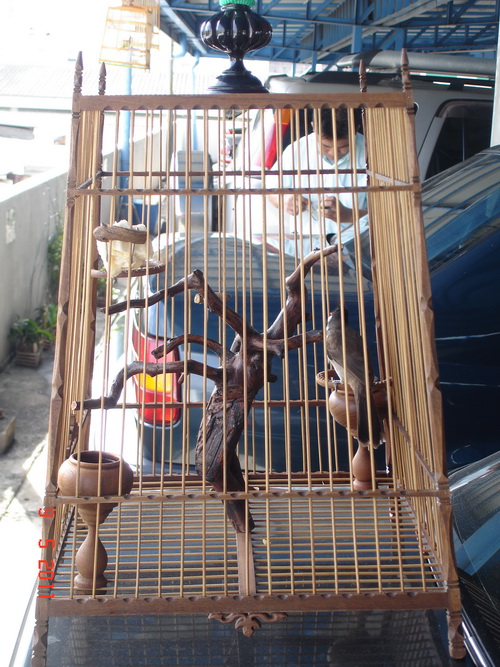 ขายกรงสปอร์ทรากไม้ 15ซี่ ไม้สักย้อมสีงานสวยถ้วยไม้สัก
