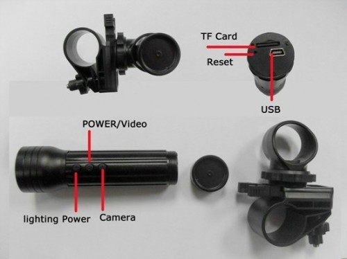 กล้องไฟฉาย ใช้ถ่ายวีดีโอโดยมีกล้องรูเข็มซ่อนอยู่ ถ่ายวีดีโอความละเอียด 720x480 พิกเซล ภาพเคลื่อนไหวที่ 30 เฟรมต่อวินาที สามารถเก็บภาพระหว่างชาร์จไฟได้ มีสายชาร์จทั้งแบบไฟบ้านและไฟรถ มาพร้อมขาตั้งที่มีจุ๊บตรงฐานทำให้ยึดอยู่กับที่ได้ดี เหมาะสำหรับผู้ที่ชื่นชอบการท่องเที่ยว เก็บภาพจากรถระหว่างเดินทางได้สะดวก