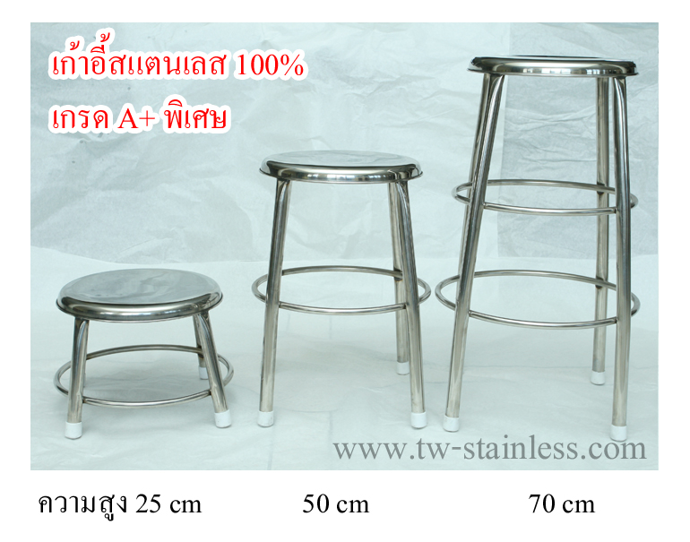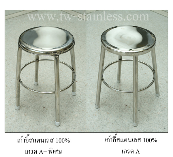 เก้าอี้สแตนเลส 100% อย่างดี ทรงกลม แข็งแรง ทนทาน ไม่กลัวน้ำ ไม่กลัวแดด ไม่แตก ไม่หัก ไม่ผุ รับประกันไม่เป็นสนิมตลอด 100 ปี