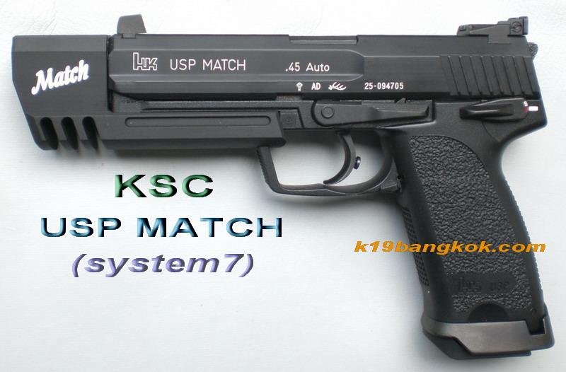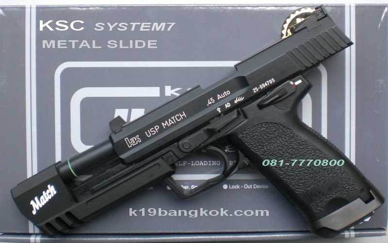 ปืนสั้นอัดแก๊สระบบสไลด์โบแบ็ค รุ่นใหม่SYSTEM7ล่าสุดนี้คือ HK รุ่น USP MATCH ของKSCไต้หวัน ในด้านการผลิตได้ตามลิขสิทธิ์ของHKเยอรมันแบบสุดยอดชนิด1ต่อ1 ติดตั้งสไลด์โลหะจากโรงงาน