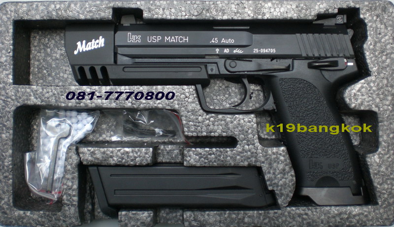 KSC ..... HK USP MATCH (system7) ของไต้หวัน เป็นปืนสั้นอัดแก๊สตัวล่าสุด ติดตั้งสไลด์โลหะแกะลายจากโรงงาน ใช้แก๊สแรงได้เลย *รับรองเป็นของแท้และใหม่100%* ราคาเพียง5800บาท