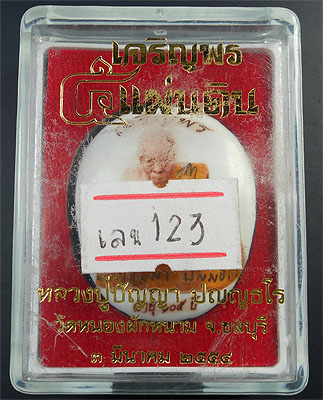 ล็อคเก็ตฉากขาว เบอร์ 1 หมายเลข 123 หลวงปู่ปัญญา วัดหนองผักหนาม จ.ชลบุรี