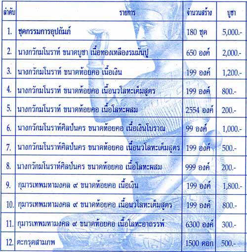 1) ลำดับ 1 ชุดกรรมการอุปถัมภ์ ได้รับวัตถุมงคลทั้งหมด 12 ชิ้น รวมมูลค่า 9,300.-