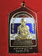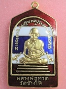 เหรียญหลวงพ่อทวดพิมพ์ห้าเหลียมเนื้อทองแดงลงยาสีธงชาติขอบสีแดงชุบทองรุ่นทองบารมี93วัด