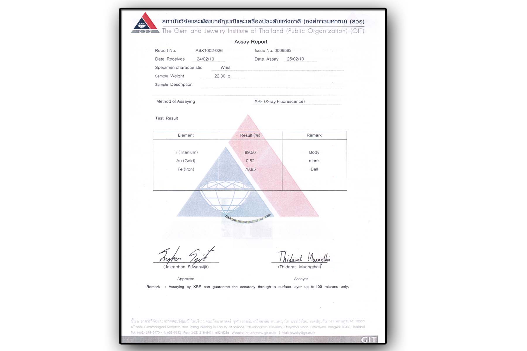 (ตัวเรือนเป็นไททาเนียม) ไม่ลอก ไม่ดำ ไม่เป็นสนิม และไม่เป็นอันตรายใดๆต่อร่างกาย