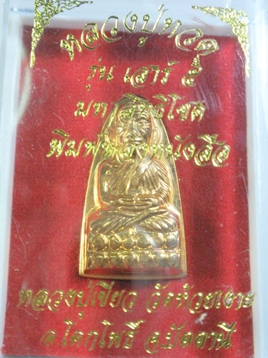 หลวงพ่อทวดพิมพ์หลังหนังสือเล็กเนื้อทองแดงกะไหล่ทองรุ่นเสาร์5 มหาสิทธิโชค