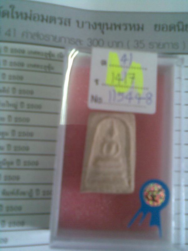 เป็นพระบางขุนพรมปี พ.ศ.2509 สภาพพระสวยสุดๆไม่ผ่านการใช้ ส่งเข้าประกวดครั้งแรกและครั้งเดียว เมื่อวันที่27 มีนาคม 2554 ที่ผ่านมา ได้รับรางวัลที่ 4 สภาพสวยสมบูรย์ ด้านหลังมีตราเจดีย์ สวยแท้ ดูง่าย มองมวลสารพุทธคุณผงเก่าตอนเปิดกรุ 2500 กระจายอยู่ทั่วองค์พระ พระสมเด็จรุ่นนี้ ราคาไปไกลมากแล้ว อนาคตราคาต้องหลายแสน ใช้แทน พระสมเด็จวัดบางขุนพรม กรุบางขุนพรม ได้เลยครับ เพราะใช้มวลสารของสมเด็จบางขุนพรมตอนเปิดกรุซึ่งราคาตอนนี้เป็นหลายๆล้านแล้วครับ และสุดยอดมวลสารชนิดต่างทีเป็นมงคลมามาโขลกรวมกัน ผ่านพิธีพุทธาภิเษก รวมเกจิอาจารย์ดังสมัยนั้นนับร้อยรูป พร้อมใบรับรองจากทางสมาคมผู้นิยมพระเครื่องพระบูชาไทย