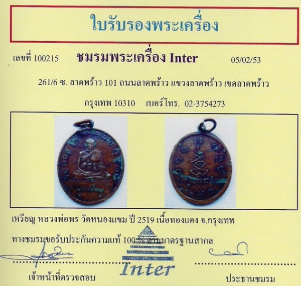 &&&&& เหรียญ หลวงพ่อพร วัดหนองแขม ปี 2519 ประกอบพิธีปลุกเสกใหญ่ หลวงปู่โต๊ะ วัดประดู่ฉิมพลี/หลวงพ่อเอีย วัดบ้านด่าน ร่วมเสก ประสบการณ์สูง น่าเก็บสะสม สภาพสวย รับประกันความแท้100%พร้อมบัตรรับรอง &&&&