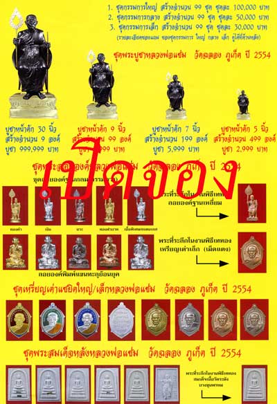 กำหนดรับวัตถุมงคล : วันที่ 2 พฤษภาคม 2554
