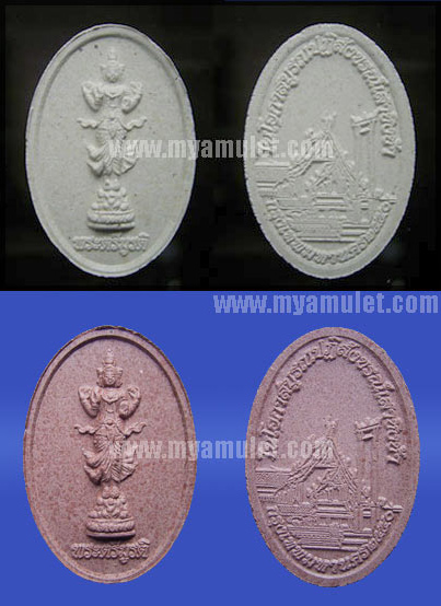 องค์นี้ด้านหน้าเป็นพระตรีมูรติ (ปางยืน) ด้านหลังเป็นเสาชิงช้า รูปไข่ ขนาด 1.9 x 3 ซ.ม. เห็นเนื้อไม้ชิ้นเล็กๆในเนื้อพระ บรรจุในกล่อง ติดสติ๊กเกอร์สัญลักษณ์ กทม. มีสองสีให้เลือก แดงเข้ม และ ขาว องค์ละ 250 บาท ราคานี้จัดส่งทางลงทะเบียนให้ฟรี (ถ้าต้องการให้ส่ง EMS เพิ่มค่าส่ง 30 บาท)