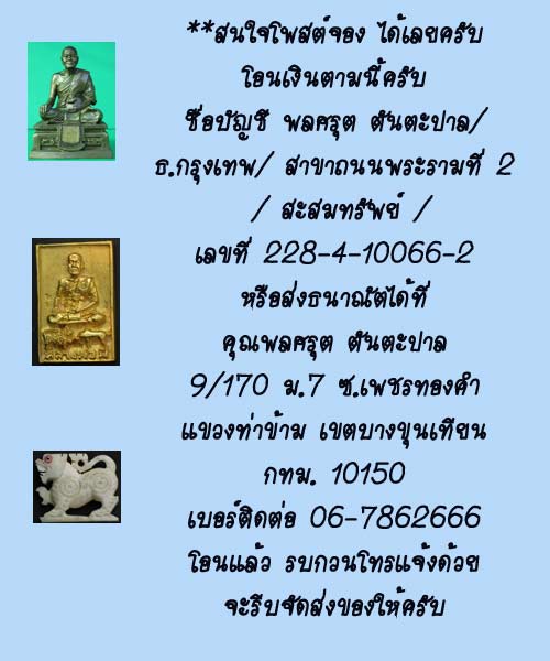 สนใจรายการอื่น ๆ แวะเยี่ยมชมที่ร้านบารมีหลวงพ่อมีได้เลยครับ ที่เวปด้านล่างครับ ขอบคุณครับ update เรื่อย ๆครับ