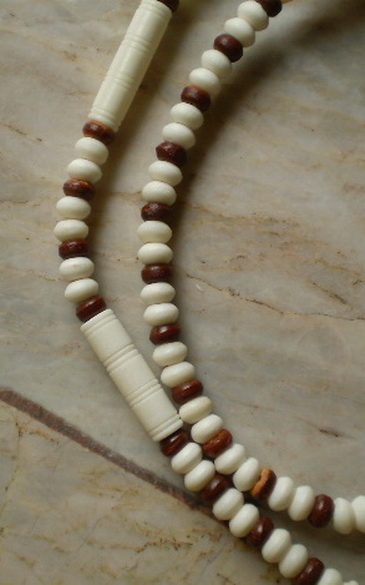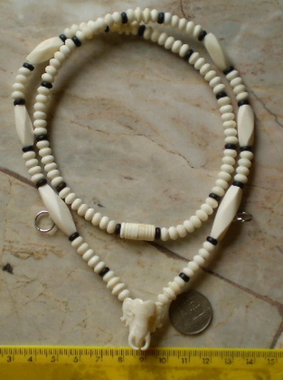 สร้อยกระดูกช้าง สลับกะลาตาเดียว ห่วงกลางหัวช้าง แกะจากกระดูกช้าง ความยาว 24 นิ้ว