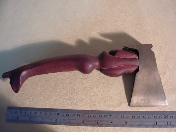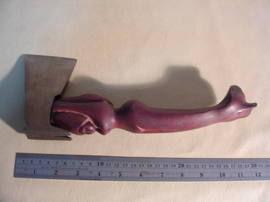 ขวานแกะสลักด้าม ทำจากไม้ประดู่ แกะสลักเป็นรูปนางเงือก