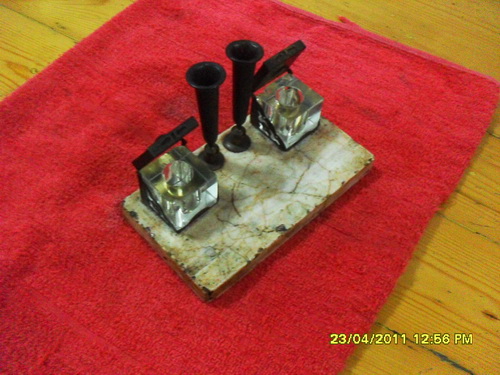 ของเก่าสะสม ชุดวางเสียบปากกา ฐานหินอ่อน โบราณอายุกว่า70ปี ขนาดฐาน หินอ่อนเก่า