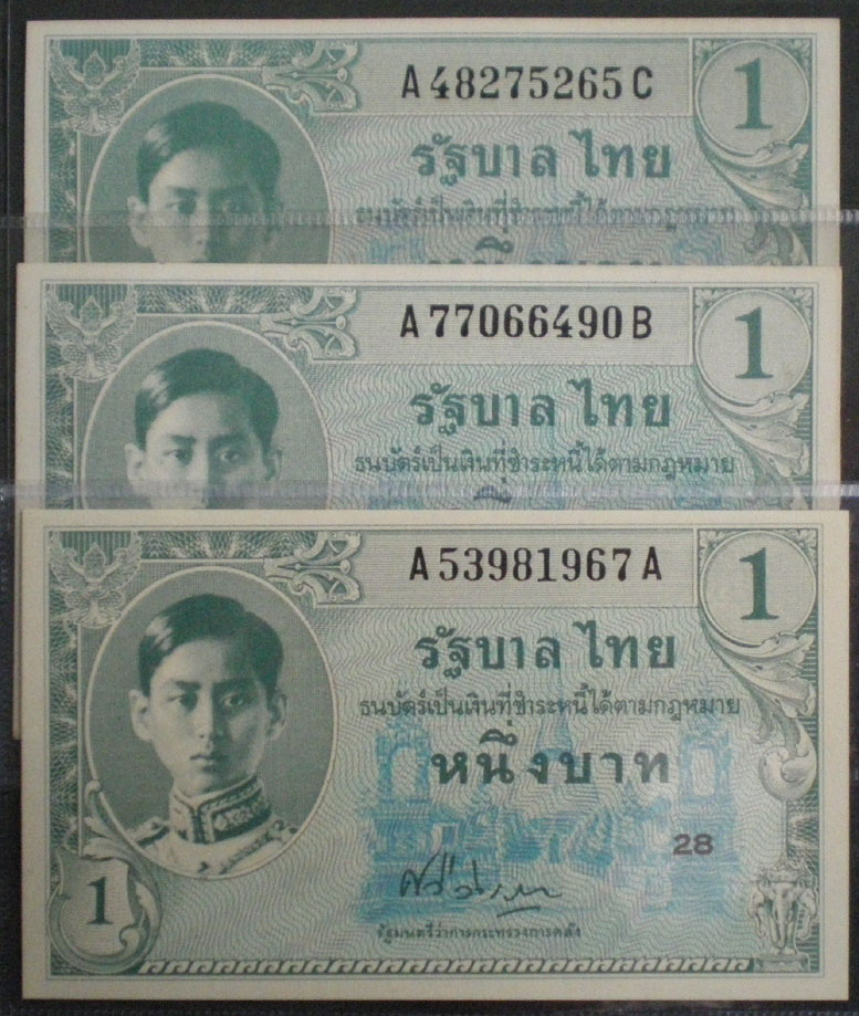 ธนบัตร ชนิดราคา ๑ บาท สมัยรัชกาลที่ ๘ แบบ ๘ พานรัฐธรรมนูญ สภาพสวย UNC. หมวด A B และ C หายาก ราคา ชุดละ 800 บาท (w.974)