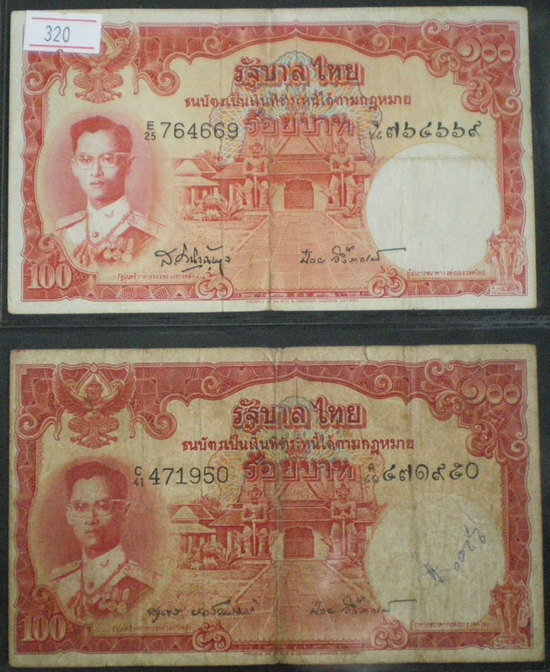 ธนบัตร ชนิดราคา ๑๐๐ บาท สมัยรัชกาลที่ ๙ แบบ ๙ ครุฑสีแดง ลายเซ็น ส.วินิจฉัยกุล-ป๋วย อึ้งภากร และ สุนทร หงส์ลดารมย์-ป๋วย อึ้งภากร สภาพผ่านการใช้งาน หายาก ราคา ชุดละ 600 บาท (w.973)