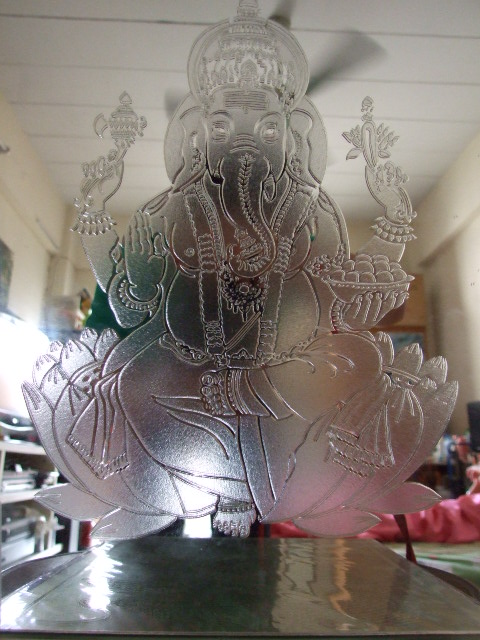 เป็นงานศิลปะการกัดกระจกร่องลึก รูปพระพิฆเนศวร