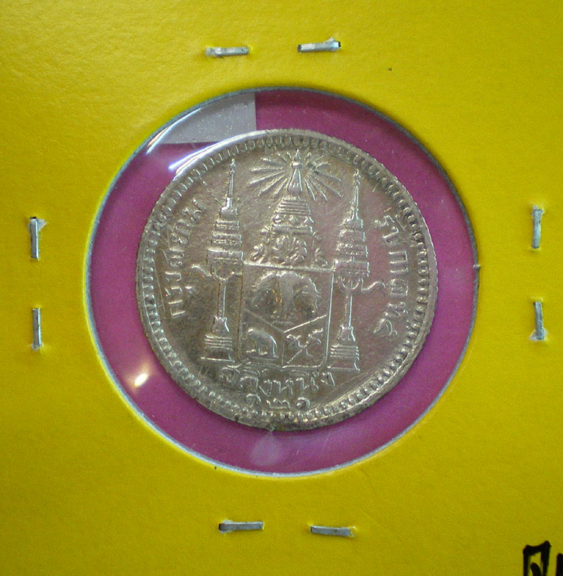 เหรียญเงิน ชนิดราคา ๑ สลึง รัชกาลที่ ๕ ร.ศ. ๑๒๑ สภาพผ่านการใช้งาน หายาก เหมาะสำหรับเก็บสะสม ราคา เหรียญละ 1,250 บาท (ว.726)