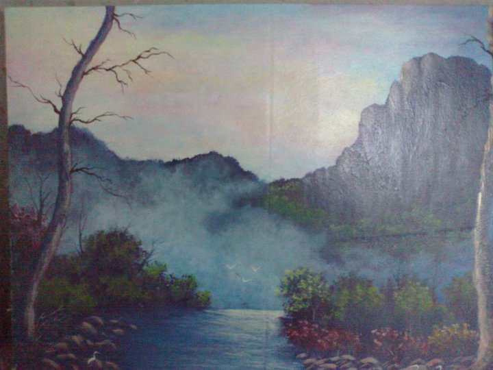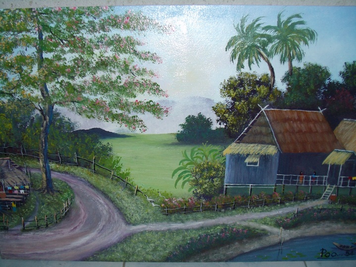 ภาพวิวสีน้ำมันวาดจากข้อมือผูกหนังยางกับพู่กัน (นิ้วมือเขาไม่มีแรง) จากชายพิการที่ประสบอุบัติเหตุทางรถยนต์เมื่อ 15 ปีที่แล้ว เขาต้องการช่วยภรรยาที่มีอาชีพเป็นครูสอนเด็กอนุบาลที่แบกรับภาระทุกอย่างในครอบครัว ชายคนนี้ขาทั้งสองข้างและนิ้วมือก็ใช้การไม่ได้ ภาพวาดสีน้ำมันบนเฟรมขนาด 60x40 cm ต้องการขายภาพละ1,000 บาท ถ้าสนใจภาพติดต่อภรรยาเขาได้นะค่ะ เบอร์ 08-9215-7357