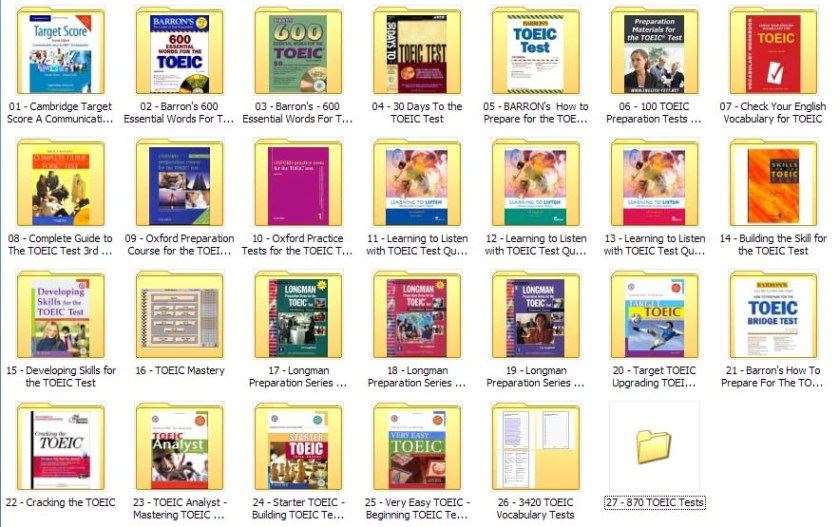 DVD ชุดนี้รวบรวม Material มากเท่าที่จะมากได้เพื่อให้ผู้เตรียมสอบนำมาใช้ในการเตรียมตัวสอบสำหรับ TOEIC แบบใหม่ รายละเอียดสินค้าอยู่ด้านล่างนะครับ Material จะมีสามประเภทนะครับ Interactive Program, EBook, และ Audio CD. ส่วนใหญ่จะเป็น E-Book (PDF File) พร้อมไฟล์เสียง (Audio File) ของค่ายดังต่าง ๆ ทุกค่ายที่เชี่ยวชาญทางด้านนี้โดยเฉพาะ เช่น Barron TOEIC, Longman TOEIC, Cambridge TOEIC, Oxford TOEIC, Princeton TOEIC แต่ละเล่มจะประกอบด้วยทุกส่วนของการสอบ คือ Listening, Grammar, Reading เหมาะสำหรับผู้ที่ไม่มีพื้นฐานเลยถึงผู้ที่มีพื้นฐานภาษาอังกฤษบ้าง ซึ่งมีข้อสอบจริงของ TOEIC พร้อมเฉลยมากมายอยู่ใน E-Book เล่มต่าง ๆ ของค่ายดัง สินค้าท้งหมด 27 รายการด้านล่างบรรจุอยู่ใน DVD จำนวน 2 แผ่นครับ ราคา 500 บาท ค่าจัดส่ง EMS ฟรีทั่วประเทศครับ