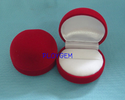 กล่องแหวนกำมะหยี่สีแดง กล่องใส่แหวน 1 กล่อง กำมะหยี่สีแดง ข้างในพื้นขาว รูปกลม