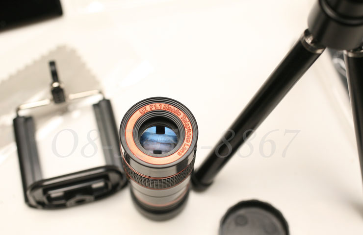 กล้องต่อขยายได้ 8X พร้อมเคสแข็ง ขาตั้ง ตัวล็อค คู่มือ ผ้าเช็ดจอ