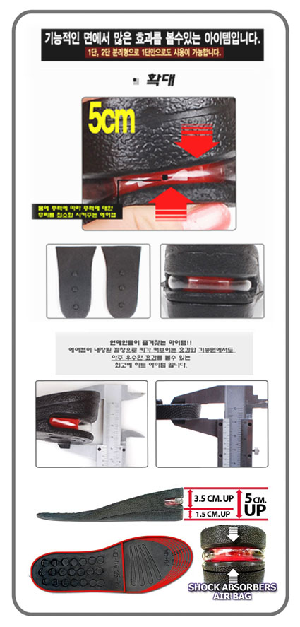 คุณสมบัติของ Absorbers Air Pump แผ่นเสริมรองเท้า สำหรับเพิ่มความสูง