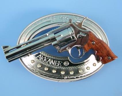 หัวเข็มขัดปืน มีทั้งแบบปืนลูกโม่ .357 และแบบปืนโบราณ