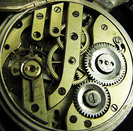 หน้าปัดสีดำ สามเข็มแยก มีอักษร Q-te Salter และ Regulateur ตัวเรือนเป็น Coin Siver เลขที่ตัวเรือน # 1406202 ฝาหลังพิมพ์ "Ancre Ligne Droite Double Plateau 15 Rubis Levees Visibles" เครื่อง 15 Jewels แบบไขลาน ตั้งเวลาแบบ Nail Set ไม่ต้องดึงเม็ดมะยมออก แต่ใช้การกดสลักเหนือเม็ดมะยม จึงสามารถตั้งเวลาได้ เครื่องนาฬิกาใช้การได้ดี