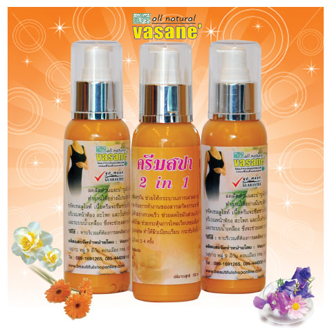 คุณจะผอมได้โดยไม่ต้องกินยา ไม่ต้องกินอาหารเสริม ไม่ต้องนวดให้เสียเวลา จะดีแค่ไหนถ้าผอมได้โดยทาครีมสปา ทาง่ายเหมือนทาโลชั่นทาผิว ไม่ต้องนวดเลยสักนิด ทาเช้าเย็นเห็นผลใน 7 วัน เรากล้ารับรองในคุณภาพสินค้า ทดลองแล้วว่าเห็นผลเร็วกว่าเดิม