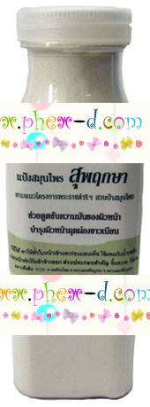 แป้งสมุนไพร สุพฤกษา ไม่แต่งกลิ่น ไม่ใส่สี ไม่ใส่สารกันเสีย ไม่มีส่วนผสมของ TALC* *ทัล คัม คือ แร่หินชนิดหนึ่งที่ได้มาจากการทำเหมืองหินทาล์ค แล้วนำมาโม่ให้ละเอียด อบให้แห้งและฆ่าเชื้อ แม้จะมีการแยกสิ่งแปลกปลอมออก แต่ก็ยังไม่สามารถทำให้บริสุทธิ์ได้ จึงยังมีสิ่งแปลกปลอมหลงเหลืออยู่บางอย่าง ที่อาจจะมีคุณสมบัติคล้ายแอสเบสตอส (Asbestos) ซึ่งองค์การอนามัยโลก (WHO) และ U.S. Environmental Protection Agency จัดให้เป็น Unclassifiable Carcinogen (สารก่อมะเร็งที่ไม่สามารถจัดจำพวกได้) ทัล คัม เป็นสารอนินทรีย์ จึงไม่สามารถย่อยสลายได้ด้วยจุลินทรีย์ในธรรมชาติ ถ้าใช้โดยไม่ระมัดระวังเมื่อสูดเข้าไปเป็นเวลานานจะเกิดการสะสม อาจทำให้เกิดโรคทางเดินหายใจ (Talcosis) และอาจทำให้เกิดโรคมะเร็งรังไข่ในสุภาพสตรีได้ (Ovarian Cancer) กรณีใช้ใต้ร่มผ้าเป็นระยะเวลานานๆ)