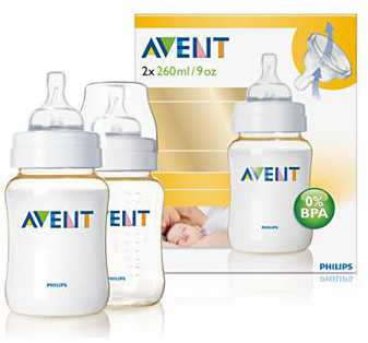 ขายขวดนม Philips Avent ขนาด 9 ออนซ์ รุ่น BPA-Free ขวดสีชา ราคาขวดละ 450 บาท ส่งฟรี!
