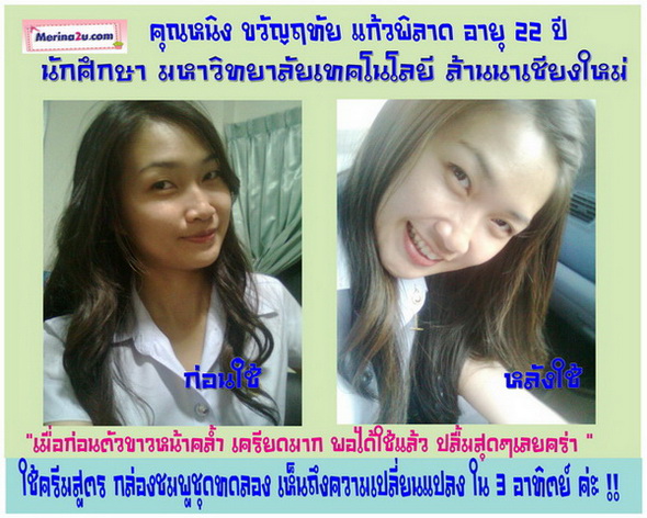 หรืออยากจะหน้าใสวิ๊งเหมือนดารา และปัญหานานาชนิด ที่เกี่ยวกับผิวหน้า และผิวกาย ซึ่ง คุณสามารถติดต่อได้ที่ หน้าร้าน www.merina2u.com หรือ เบอร์ 087-9281991